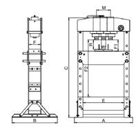 Datos técnicos | Fuerza de rensado: | 30.000 kg | | A: | 795 mm | | B: | 700 mm | | C: | 1.772 mm | | E: | 535 mm | | F: | 140 mm | | F1: | 151 mm | | F2: | 1.031 mm | | R: | 160 mm | | M: | 250 mm | | Peso neto: | 166,7 kg |